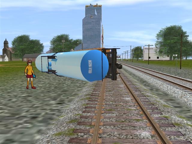 Dave Dikes, the young FBI agent, drove into the sleepy hamlet of Dinkley in his government car, a Ford Taurus sedan. Accompanying him were Velma, Shaggy, and Scooby-Doo. The hamlet was anything but sleepy this Saturday morning. The entire place was crawling with railroad repair crews, law enforcement officers, and officials from the National Transportation Safety Board (NTSB). The tank car that held the chlorine had been rerailed without incident and hauled away, so residents of the town were being allowed to return to their homes. Dikes parked his FBI sedan near the railroad crossing and got out. Velma, Shaggy, and Scooby followed suit. They began to walk along the tracks towards the wreck site.