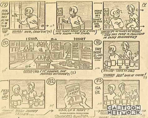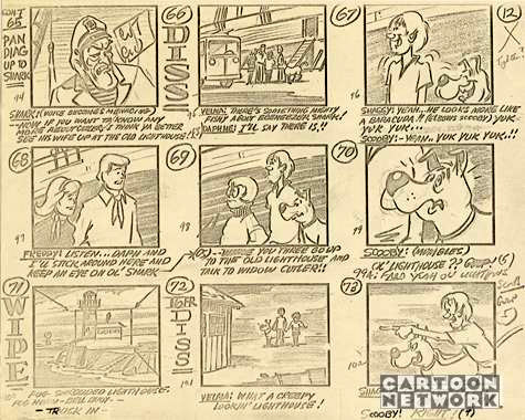 Ever wonder what a story-board of Scooby Doo looked like? Here are a couple. See if you can guess which first season episode they are from! (Use the back button on your browser to return here.)